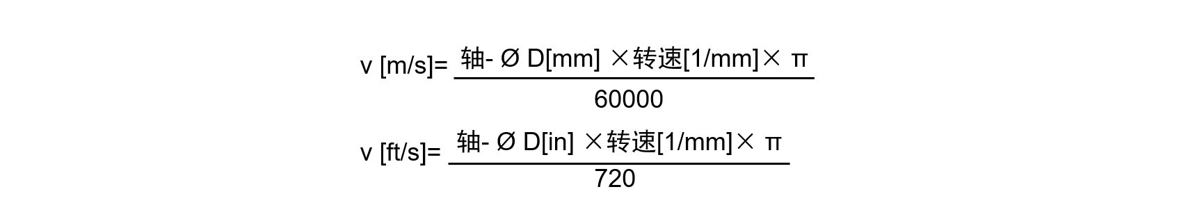 决定轴圆周速度的“v”按照以下公式计算: