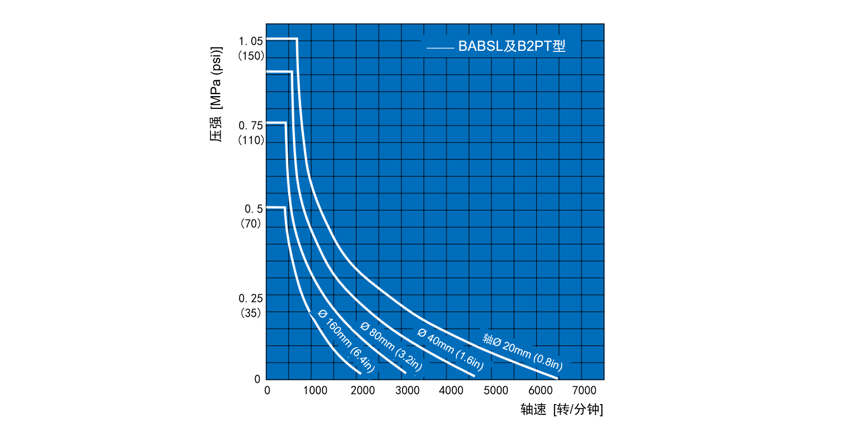 骨架油封组件内的允许压强(BABSL 及 B2PT 型)